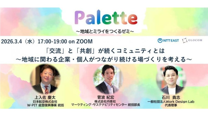 - お申込みいただいた方々に対し、今後のPaletteの開催案内や、地方創生関連の情報を送らせていただくことがございますのでご了承ください。